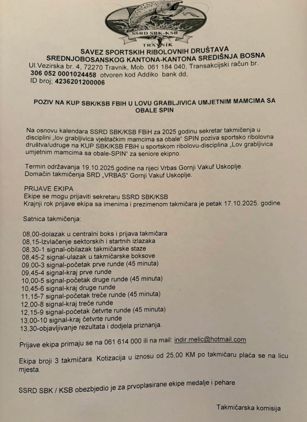 Poziv za KUP SBK/KSB-a u lovu grabljivica sa obale SPIN, koji će se održati na spin stazi Carski Most Voljevac 19.10.2025. godine. admin1 mjesec ago 0