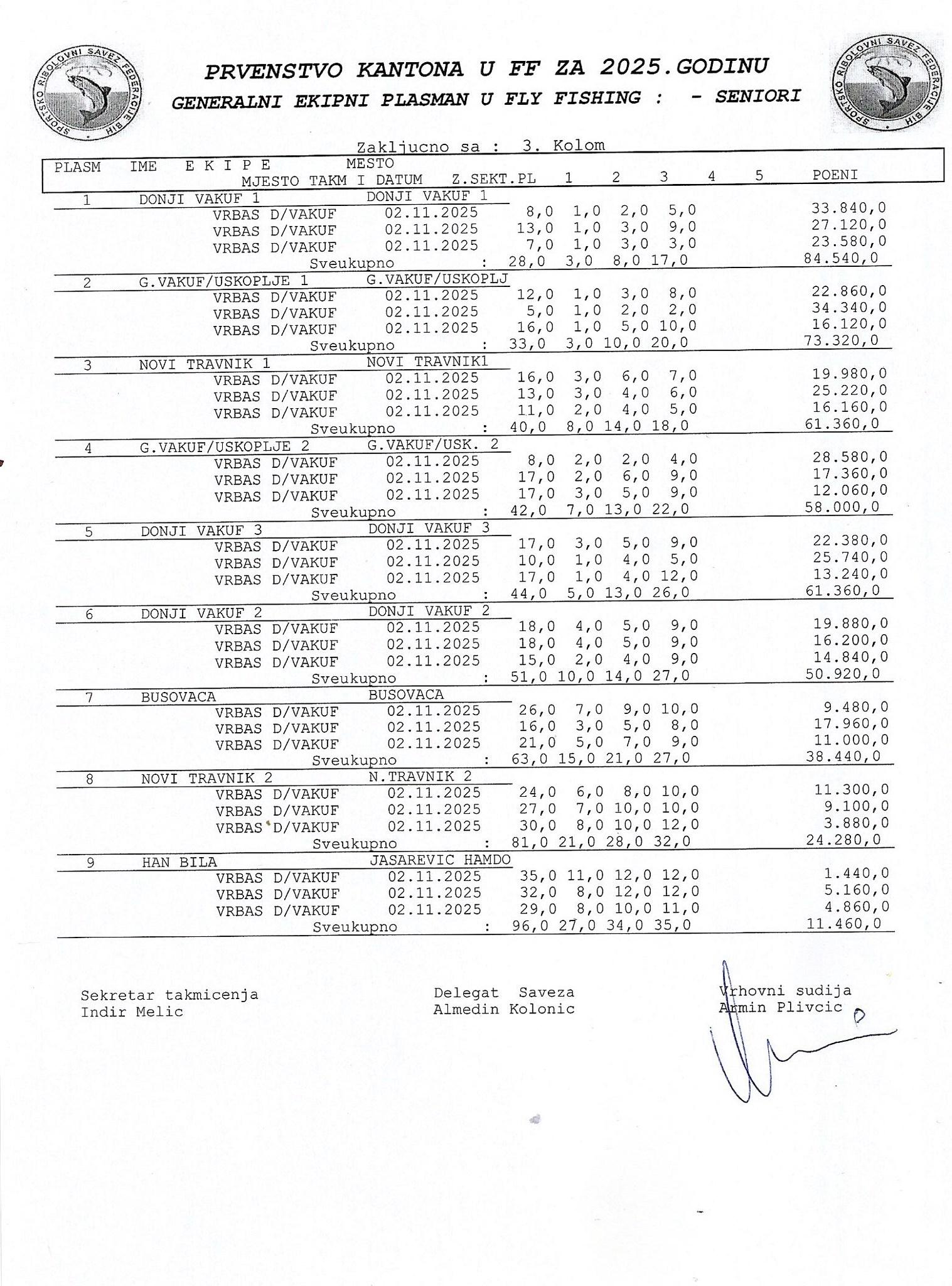 Jučer, 02.11.2025.godine, u prelijepom ambijentu Takmičarske staze za FlyFishing, na rijeci Vrbas, u centru Donjeg Vakufa, održano je Prvenstvo Srednjebosanskog kantona/ Kantona središnja Bosna u disciplini FlyFishing za 2025.godinu. Poslije maglovitog jutra, granuo je prelijep dan, koji je, pred kraj takmičenja, ometao vjetar i opalo lišće, koje je završilo u rijeci, ali takmičari se nisu dali i završili takmičenje u najboljem stilu…