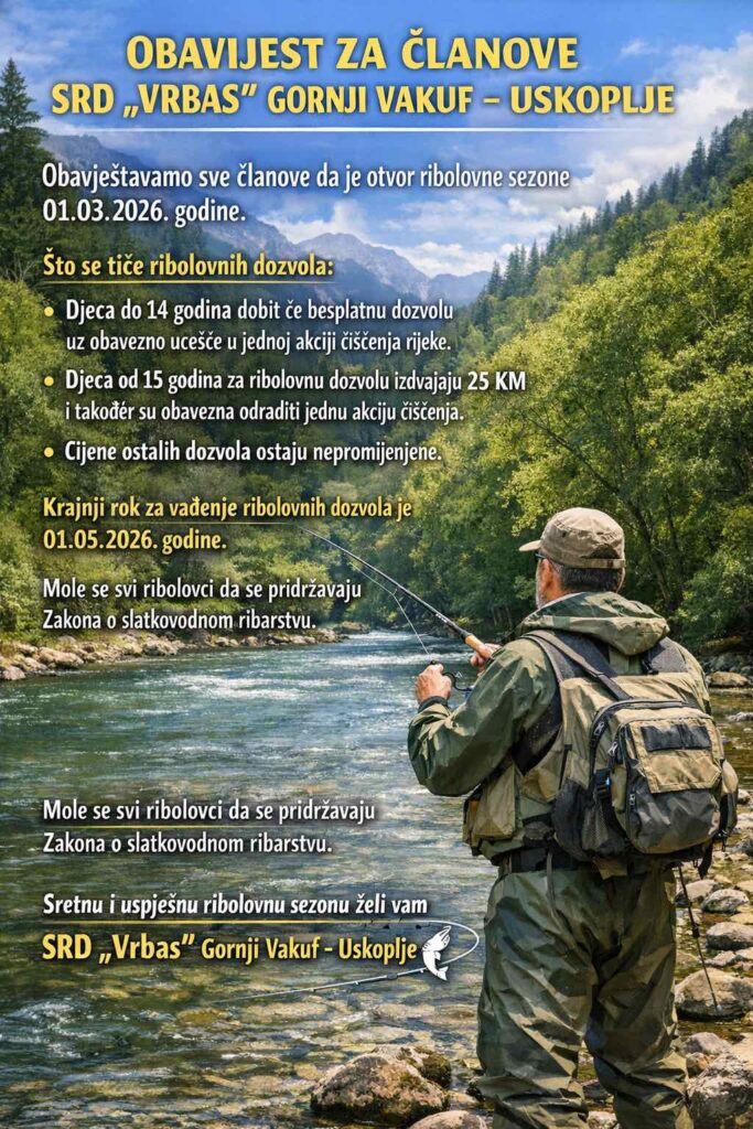 Sretan Dan nezavisnosti Bosne i Hercegovine i uspješan početak ribolovne sezone želi vam SRD „Vrbas“ Gornji Vakuf – Uskoplje. Bistro admin2 mjeseca ago 0